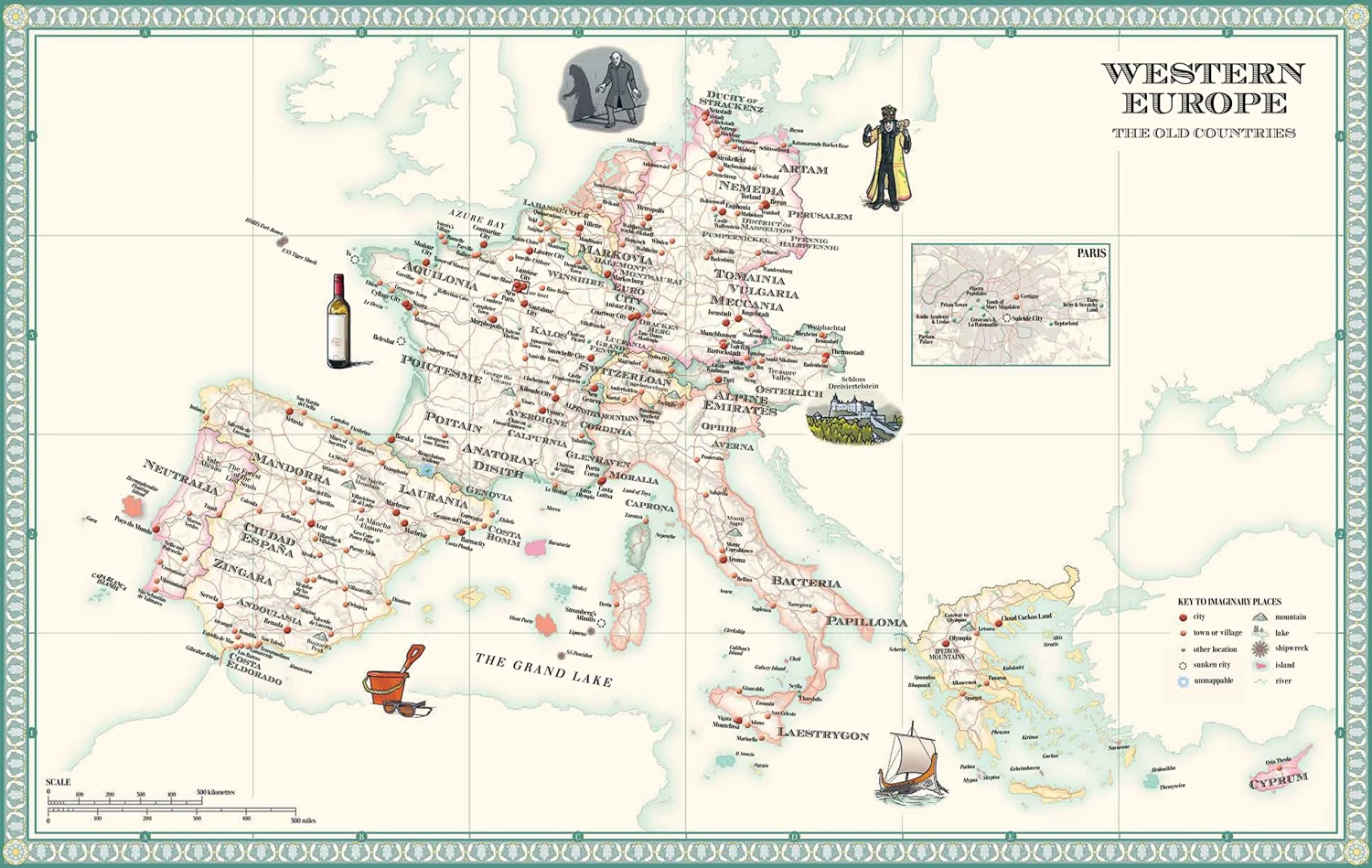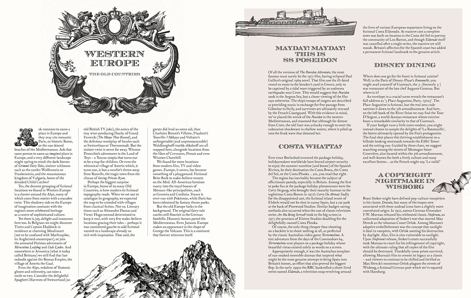 Each location has an an extended index entry plus coordinates so you can find it on the maps. Illuminating essays accompanying the maps give a great insight into the stories behind the imaginary places, from Harry Potter’s wizardry to Stone Age Bedrock in the Flintstones.