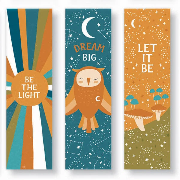 - Bookmarks measure 5.4 x 18.1 cm.