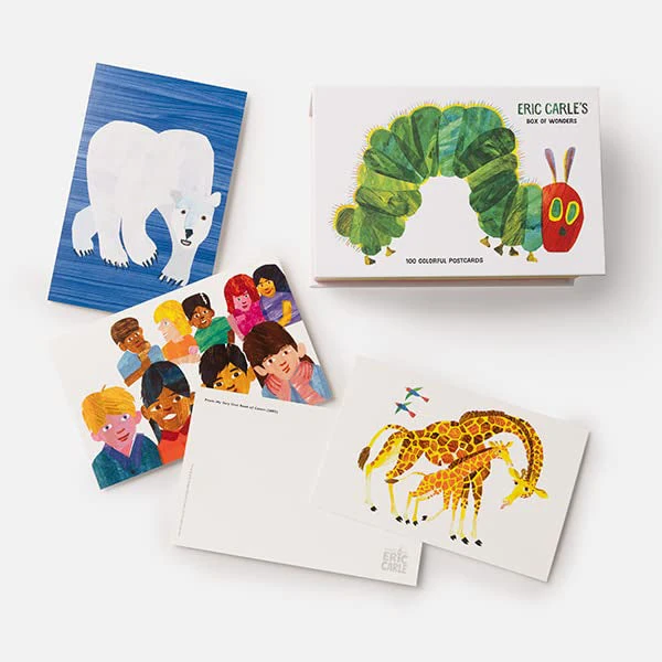 This box of 100 postcards is simultaneously a celebration of Eric Carle’s most beloved storybook characters and a colorful explosion of nostalgia. Fifty pieces of Carle’s vibrant artwork are printed on hefty, glossy cards, capturing the brightness and warmth of The Very Hungry Caterpillar; Brown Bear, Brown Bear, What Do You See?; The Grouchy Ladybug; The Mixed-Up Chameleon; and more. Each design is printed twice so you can keep one and send one. Send cards to friends and family, use them as gift tags or in craft projects, or frame and keep them for yourself!