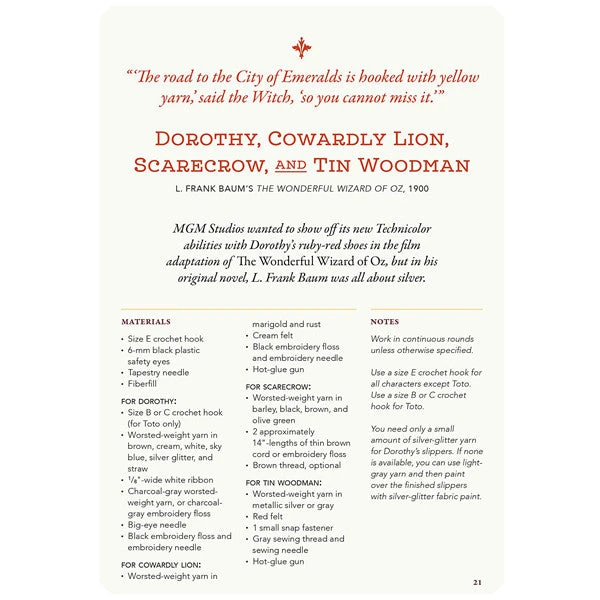 This fantastic crafts book contains 22 patterns for literary crochet dolls for bibliophiles to attempt. They are easy to follow, step-by-step patterns from 18 classic novels, plays and poetry. Featuring characters from: The Great Gatsby, The Scarlet Letter, Pride and Prejudice, The Wizard of Oz, Metamorphosis, Anne of Green Gables and The Adventures of Sherlock Holmes.