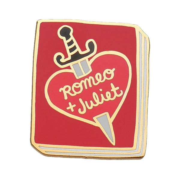 A simple, but effective interpretation of this classic play. A tragically inclined pin made from hard enamel with raised gold-plated outlines.
