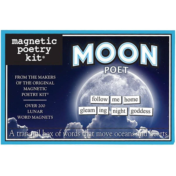 Featuring over 200 tranquil word magnets that can move oceans and hearts. Includes words like crescent, imagine, full, romance and goddess.