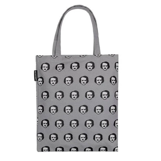 A playful tote bag interpretation of a literary great – Edgar Allan Poe. Strong tote bag with an inside pocket.