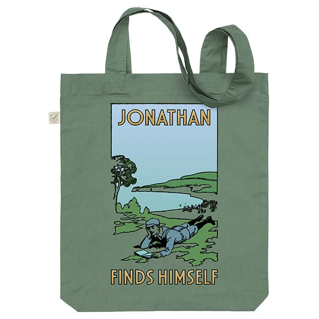 Living the dream, or at least stealing an hour or two with your favourite book… This adapted vintage book cover can be personalised with any name. Printed onto a sage green organic tote bag.