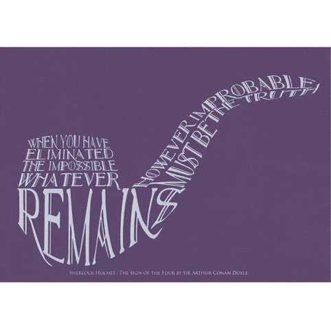 “When you have eliminated the impossible, whatever remains, however improbable, must be the truth” Holmes peevishly restates his philosophy to Watson, midway through The Sign of Four.