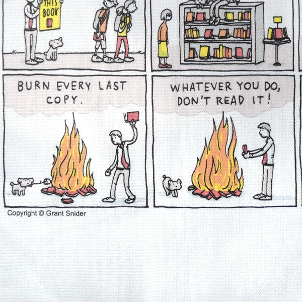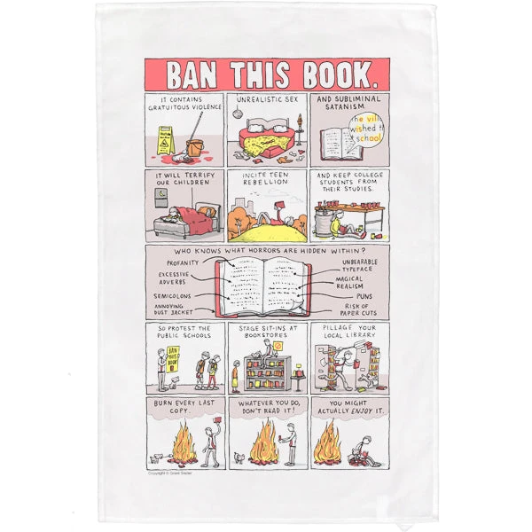 This tea towel is part of our exclusive range in partnership with Grant Snider – an orthodontist by day and a best-selling author of comics and picture books by night. His comics on reading and writing have appeared frequently in the NY Times Book Review and The New Yorker.