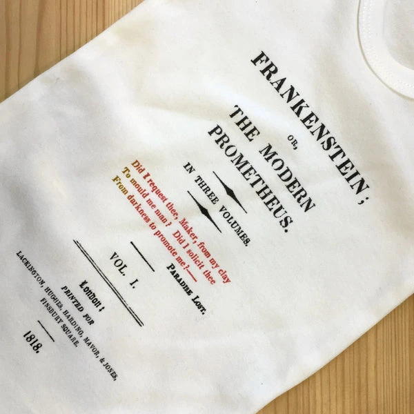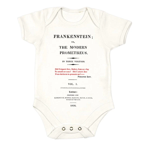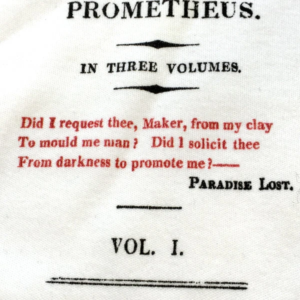 Adapted from the title page of volume one of Frankenstein; or The Modern Prometheus. Note its epigraph from Paradise Lost: “Did I request thee, Maker, from my clay / To mould me man? Did I solicit thee / From darkness to promote me?” – “I didn’t ask to be born!” cry both Adam and the creature.