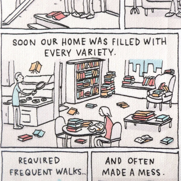 This tea towel is part of our exclusive range in partnership with Grant Snider – an orthodontist by day and a best-selling author of comics and picture books by night. His comics on reading and writing have appeared frequently in the NY Times Book Review and The New Yorker.