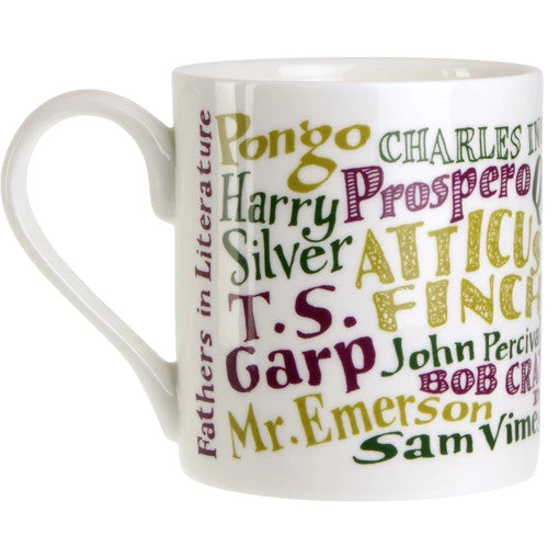 This mug is a beautiful and thoughtful gift, featuring a range fictional dads who portray the diverse qualities of fatherhood, including Atticus Finch, Dr. Carr, Bob Cratchitt, Harry Silver, Prospero and many more.