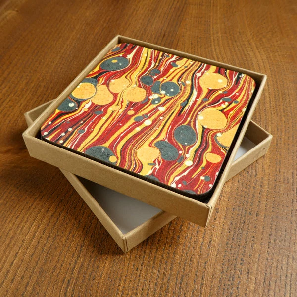 Inspired by the beautiful art of marbling, these coasters feature endpaper designs from a variety of C19th and early C20th books.