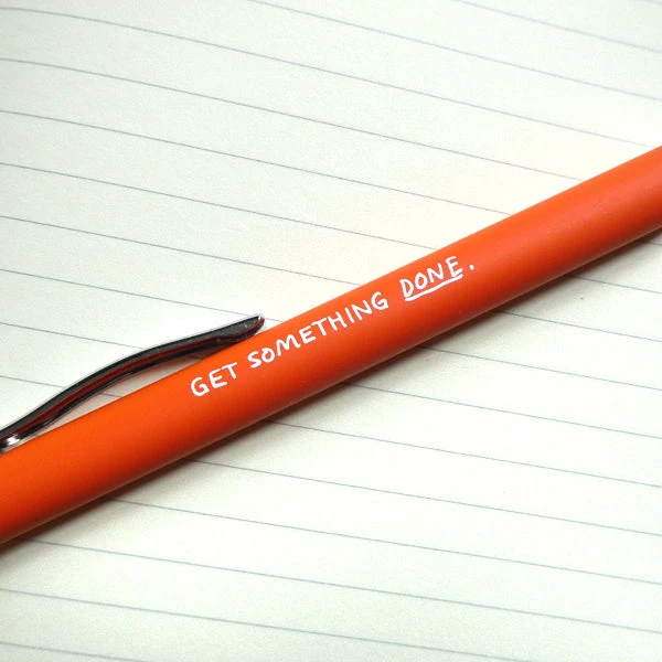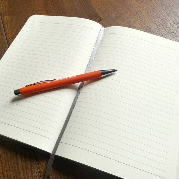 - Ballpoint pen with black ink, which takes a standard G2 Parker-style refill.
