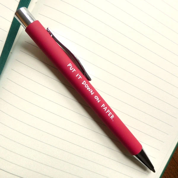 - Ballpoint pen with black ink, which takes a standard G2 Parker-style refill.
