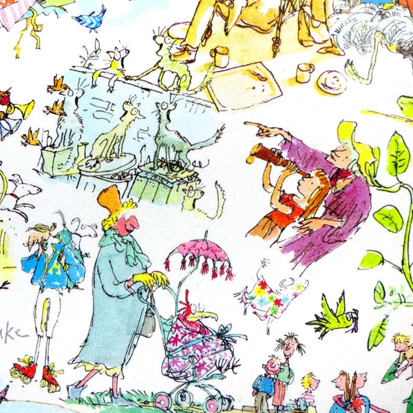 Relive memories of your favourite childhood books with one of Britain’s most celebrated children’s illustrators. This jigsaw features an ensemble cast of Quentin Blake’s best loved characters including images from Mrs Armitage, Snuff, The Green Ship, Zagazoo, Mister Magnolia, Patrick, Cockatoos, Angelo, Story of the Dancing Frog, and many more.