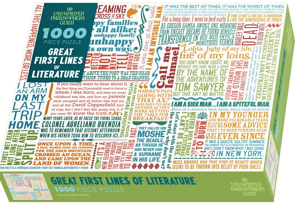 Some of the greatest opening lines in literature feature on this beautifully designed jigsaw puzzle. Classic works including tales of adventure, science fiction, romance, and mystery – these wonderful quotes will draw you in for hours of engagement.