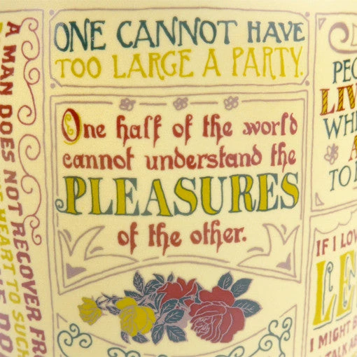 This mug is just the thing for women of independent means, and superior men. It features her image, as well as a pleasing collection of quotes and excerpts from her work.