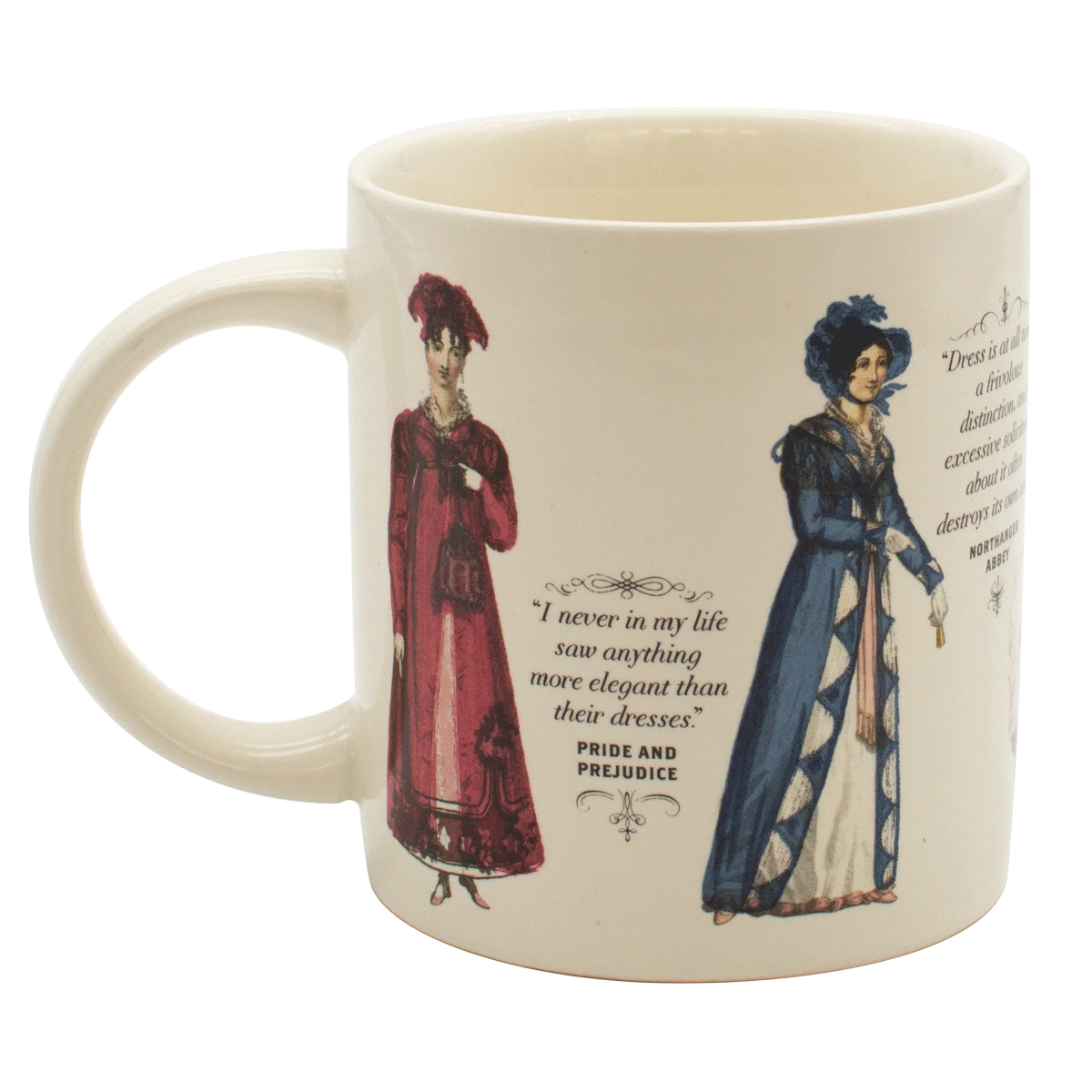 When this beautiful mug is cool, it is ringed with five becoming young ladies, each in her walking attire and bonnet. When the mug is warmed, the young ladies change into lovely evening attire.
